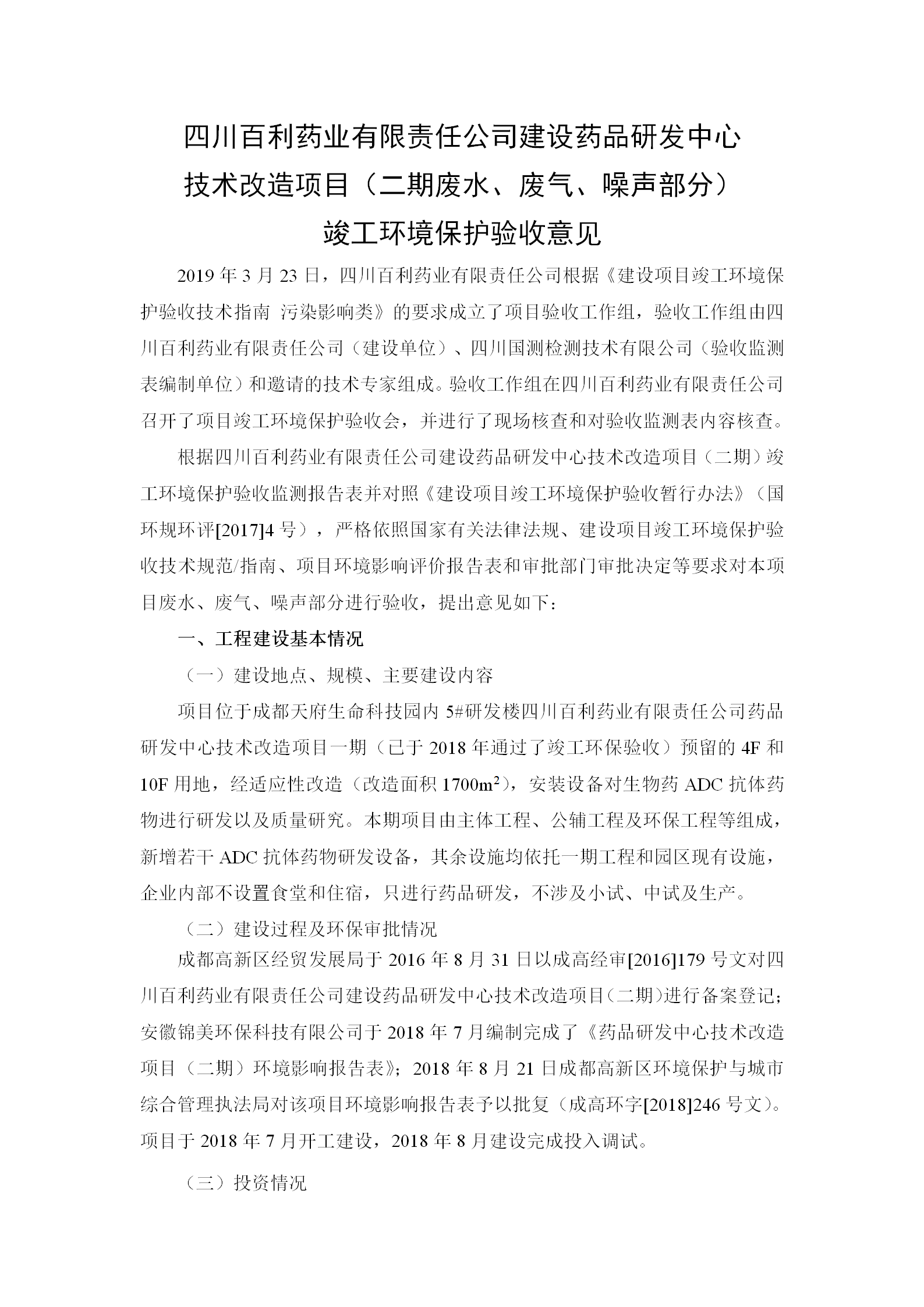 根据《国务院关于建设项目竣工环境保护管理条例的决定》以及环保部《建设项目竣工环境保护验收暂行办法》的公告(国环规环评[2017]4号)现将《四川云开体育网页版登录入口-云开(中国)有限责任公司药品研发中心技术改造项目(二期)竣工环保验收监测报告》及验收意见公示如下: